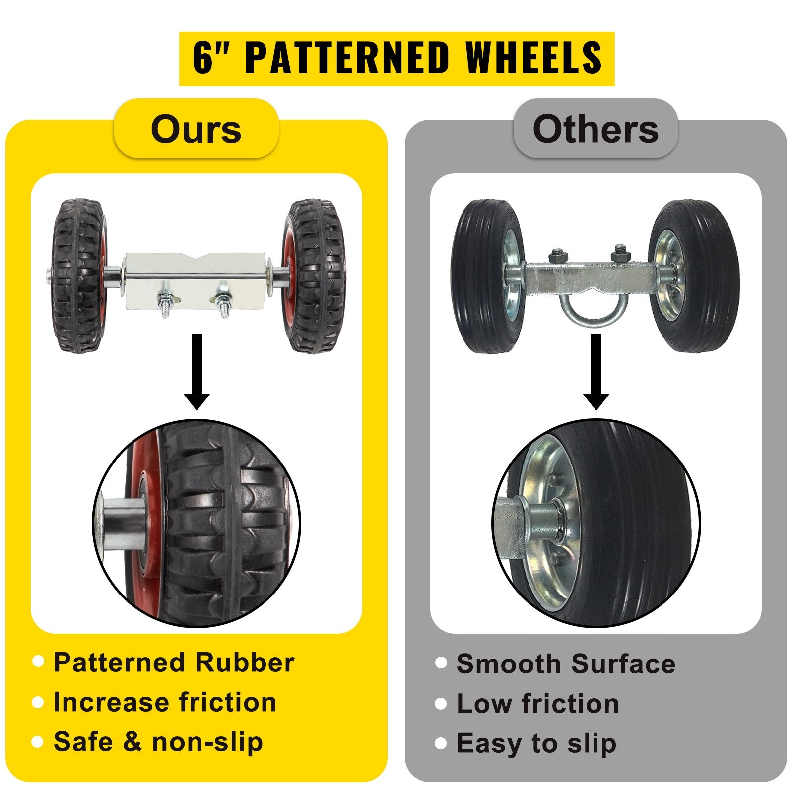 - 【 PATTERNED RUBBER WHEELS 】- The double-wheel carrier features a two 6'' solid rubber wheel, which is sturdy and easy to use. Compare to other smooth wheels, The well-designed pattern on the rubber wheel can increase the friction with the ground and not easy to slip.