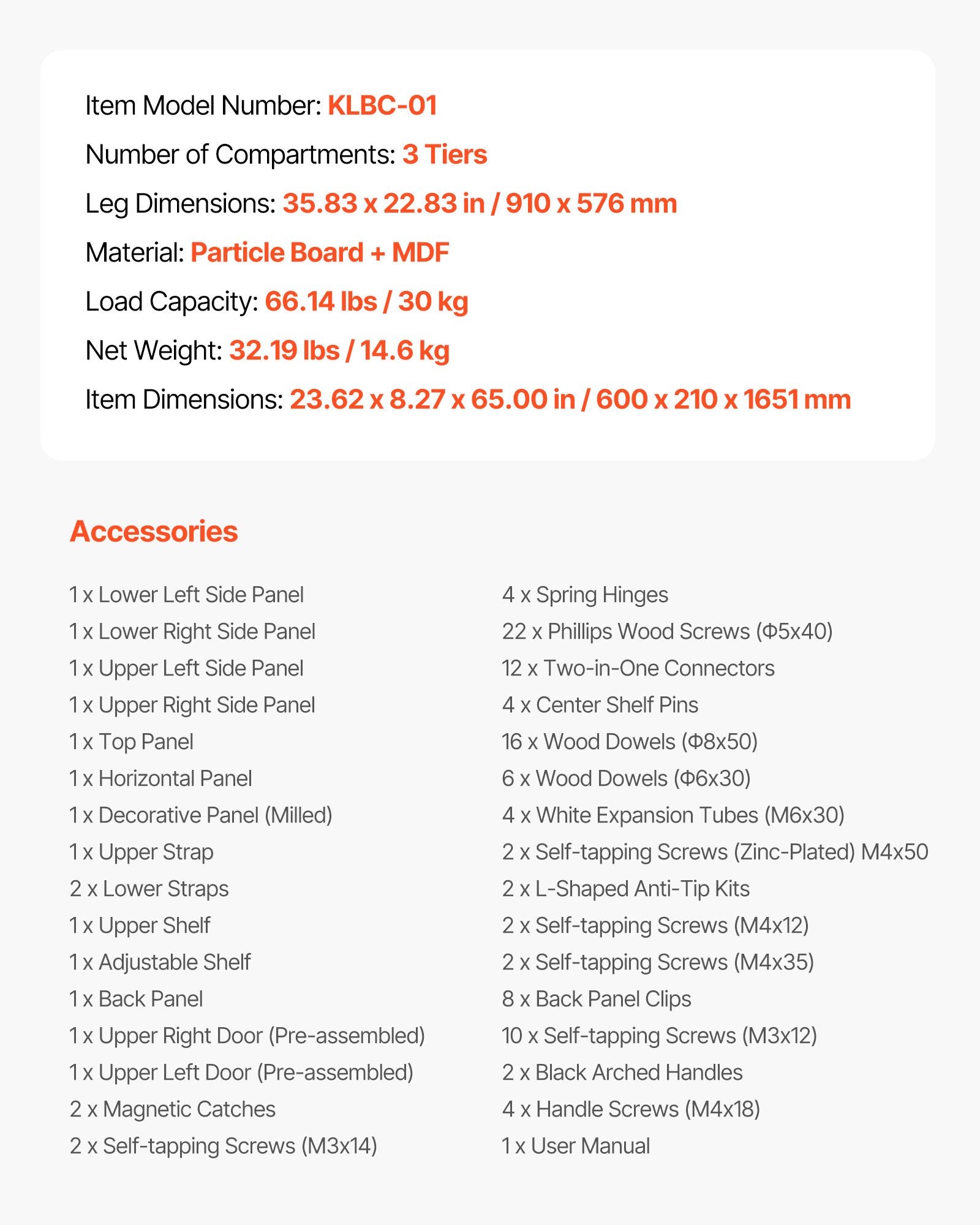 - Durable Materials: Made of particle board and MDF, this toilet storage cabinet supports up to 66.14 lbs / 30 kg with a solid, stable structure. The anti-tip kit adds extra stability, keeping it steady even with frequent door use