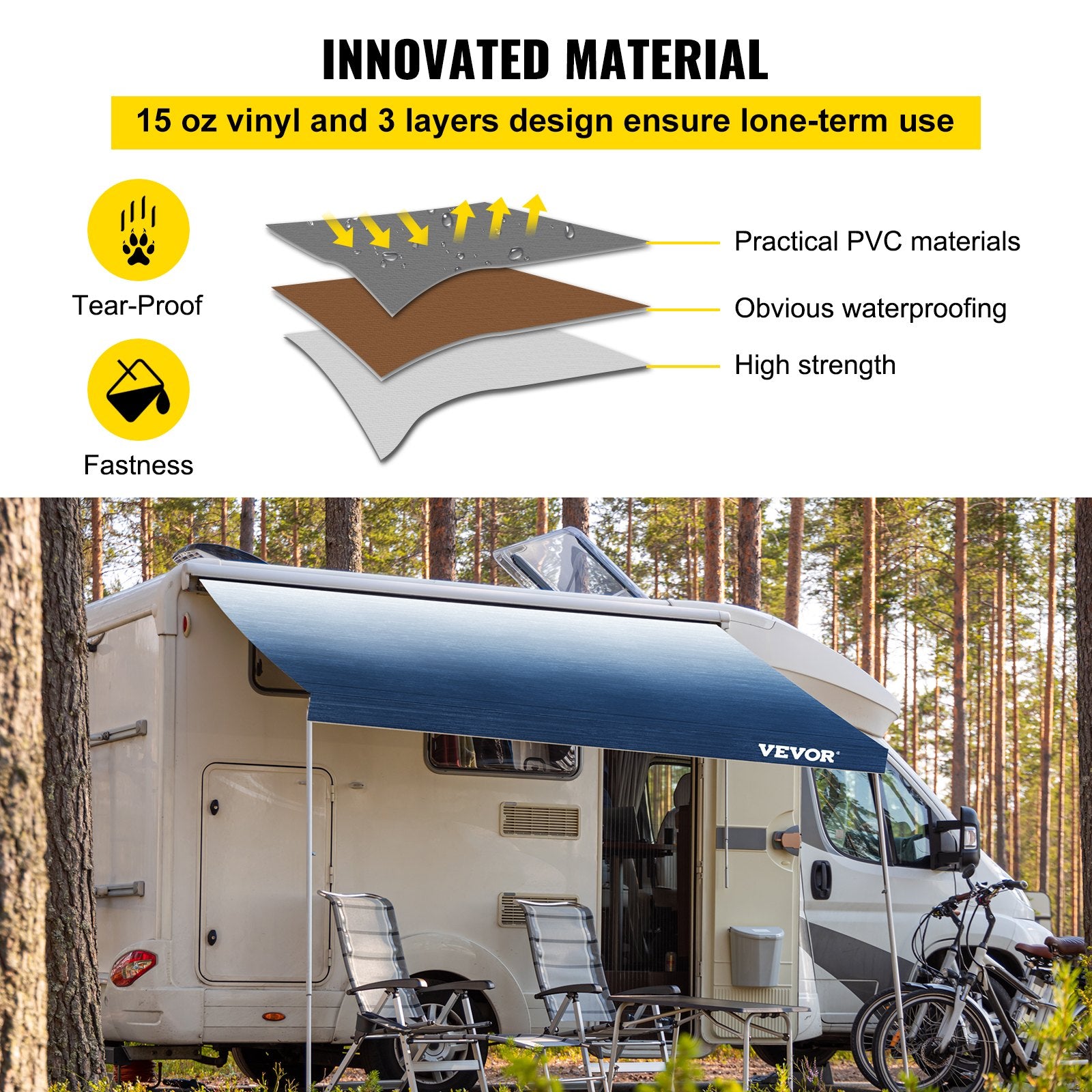 - Premium Vinyl Awnings: This RV replacement awning is made of 15 oz vinyl, with heat insulation and waterproof characteristics; keep the interior of your RV in a cool environment. And it is solid and durable enough to accompany your RV for a long time. And vinyl material is easier to clean, so you don't have to worry so much about tree sap and dirt settling in to stay.